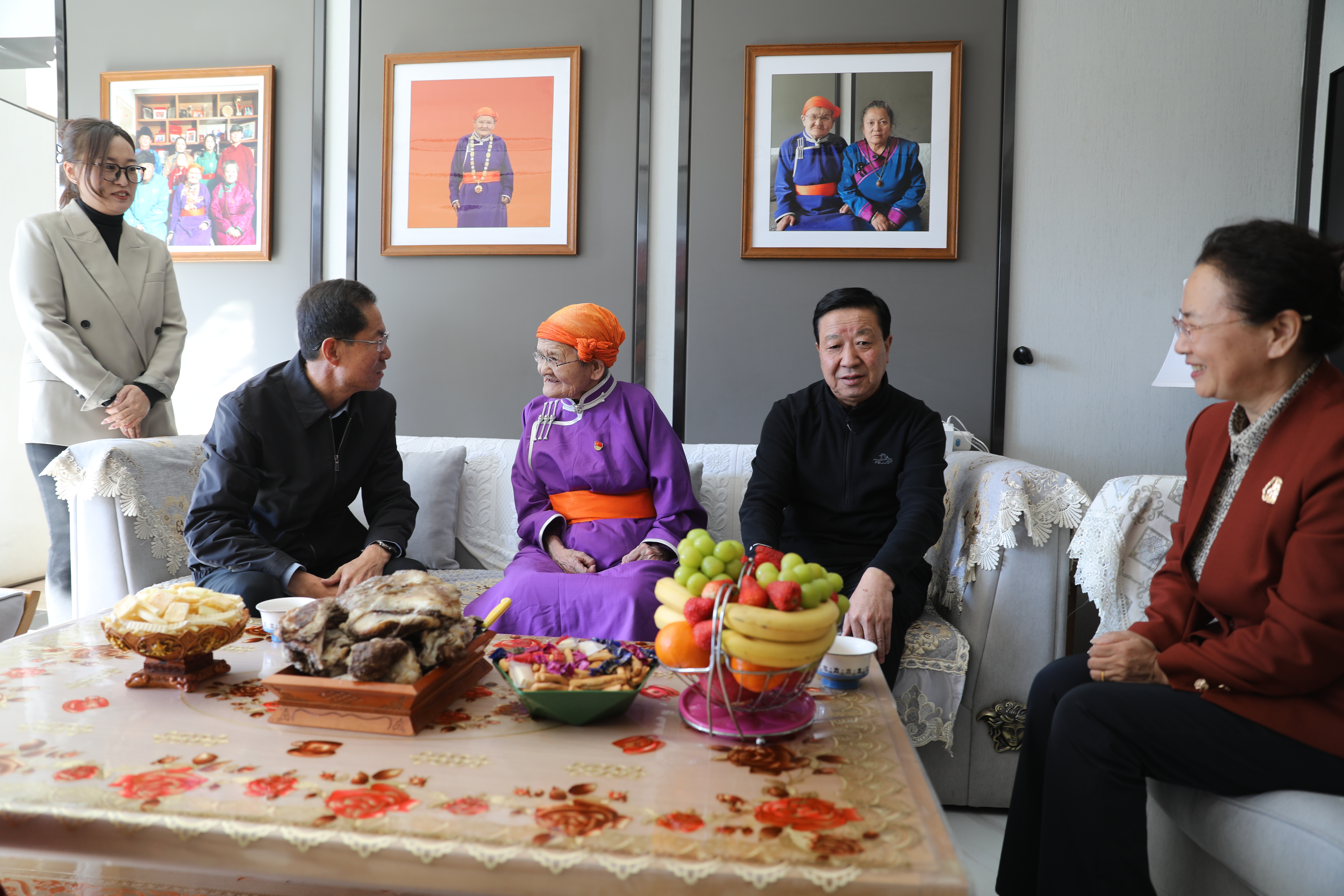 2月8日,旗委书记赵建平一行来到“人民楷模”都贵玛家中,带着旗四大班子的诚挚问候,向老人送上新春的美好祝福。